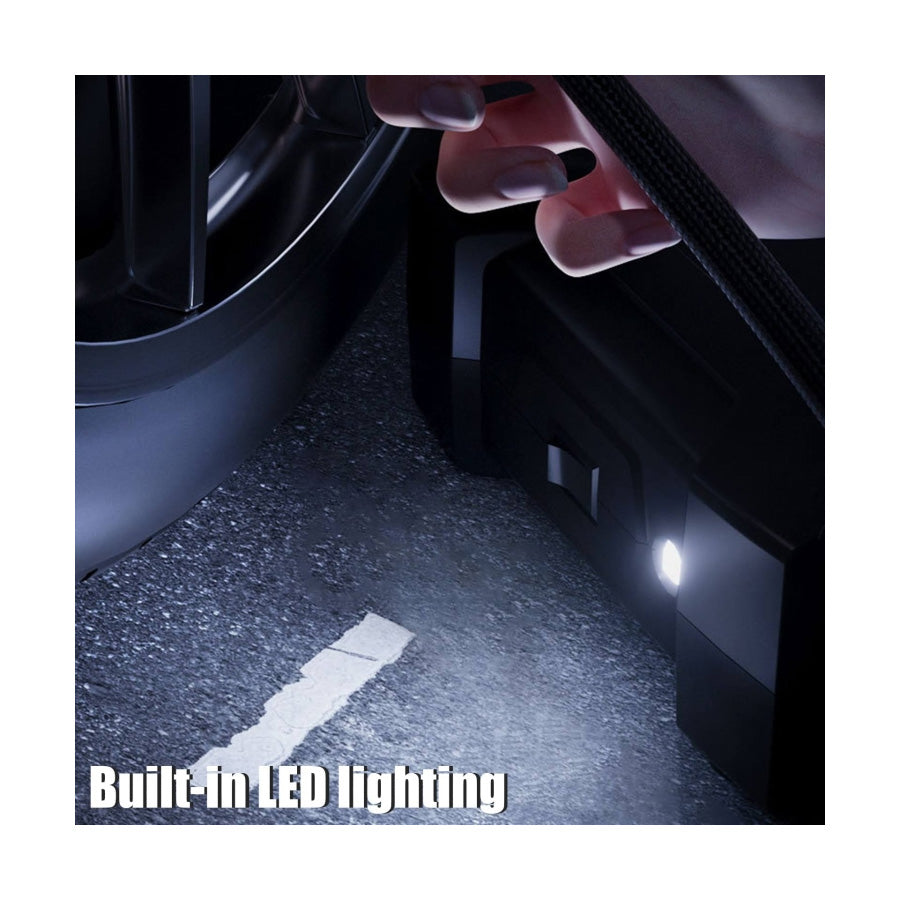 The device's body is fitted with bright LED lights, providing sufficient illumination for nighttime inflation tasks. There's no need for additional lighting tools - simply press the lighting button to switch on the lights.